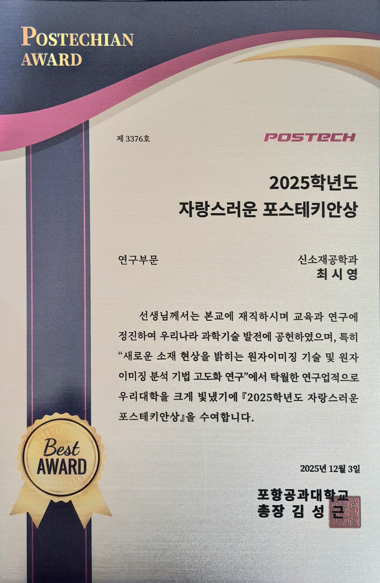 -POSTECH 위상을 높인 공로상 (연구부문) -2025.12.02 / LG Engineering Building at POSTECH, Republic of Korea